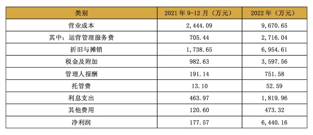 上市后,標(biāo)的基礎(chǔ)設(shè)施項(xiàng)目委托中關(guān)村軟件園公司運(yùn)營(yíng)管理,項(xiàng)目運(yùn)營(yíng)成本費(fèi)用主要包括運(yùn)營(yíng)服務(wù)費(fèi)用、園區(qū)物業(yè)服務(wù)費(fèi)用、停車管理費(fèi)用、資本性支出、稅金及附加、管理人報(bào)酬等。