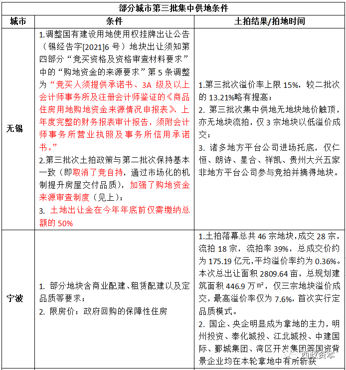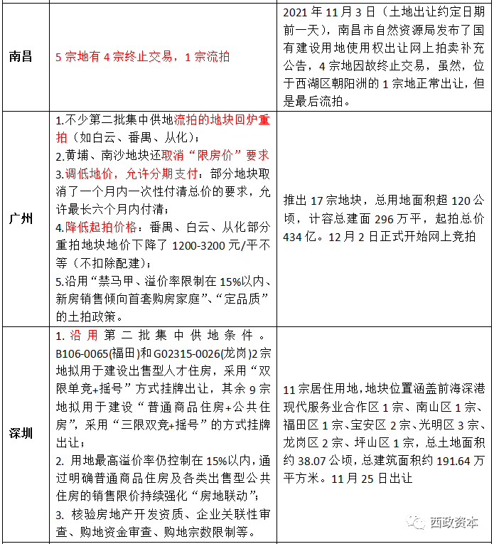 全國各城市第三批集中供地開展以來,在已經(jīng)完成土拍的城市中,國企托市現(xiàn)象依舊非常明顯(例如無錫、寧波等城市),但流拍的情況也依然頻繁,比如南昌此次推出的5宗土地中,有4宗被終止了交易,唯一有房企參拍的土地也是以流拍告終。我們注意到,盡管第三批集中供地的土拍中不少城市均不同程度地降低了拍地條件,但房企仍舊沒有什么參與的熱情,比如南京放寬了參拍企業(yè)的資質(zhì)要求(降低對聯(lián)合開發(fā)的限制,企業(yè)拿地資質(zhì)由一級或二級降至三級)、不設(shè)置報名競買、合作開發(fā)和股份轉(zhuǎn)讓要求;蘇州下調(diào)了保證金和首付款比例、取消了土地的市場指導(dǎo)價、降低首繳土地出讓金比例;廣州南沙、黃埔取消限價政策,之前流拍的土地也下調(diào)了地價,允許開發(fā)商“分期付款”(詳見文末附圖)……