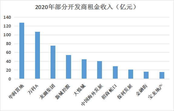 租金收入規(guī)模:租金規(guī)模和物業(yè)規(guī)模并不匹配,租金收入普遍偏低