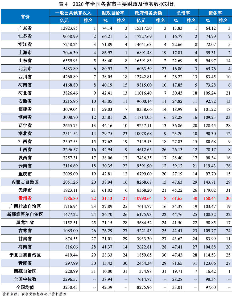 (二)貴州省財政實力及債務情況