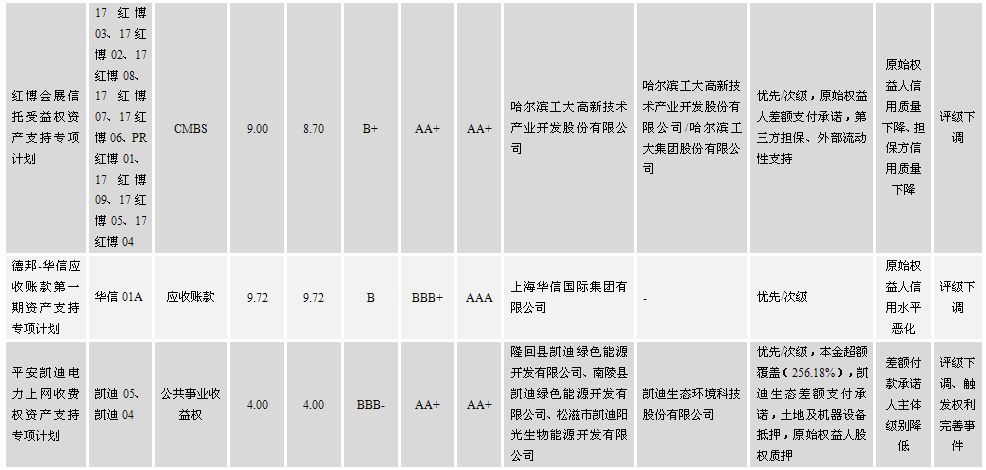 從被下調的資產支持證券到期期限來看,有9支資產支持證券已確認本金違約,10只資產支持證券已償清,剩余存續的23只資產支持證券中,其到期日主要分布于2018年至2021年間。