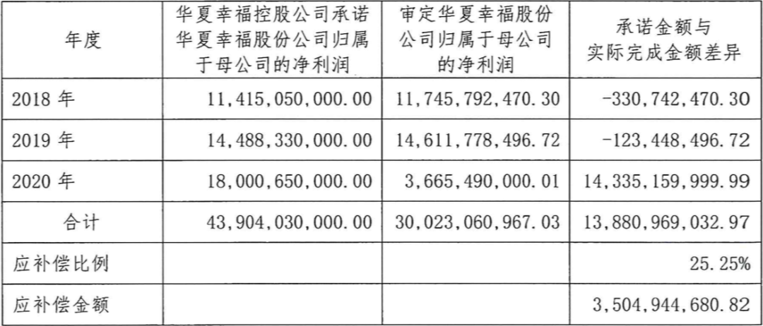 最新華夏控股2020年財報顯示,華夏控股對平安的利潤補(bǔ)償數(shù)額應(yīng)為: