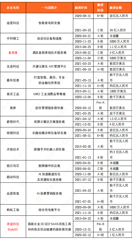 表:順為資本2019-2021年間參與多輪融資的主要數(shù)字科技企業(yè)