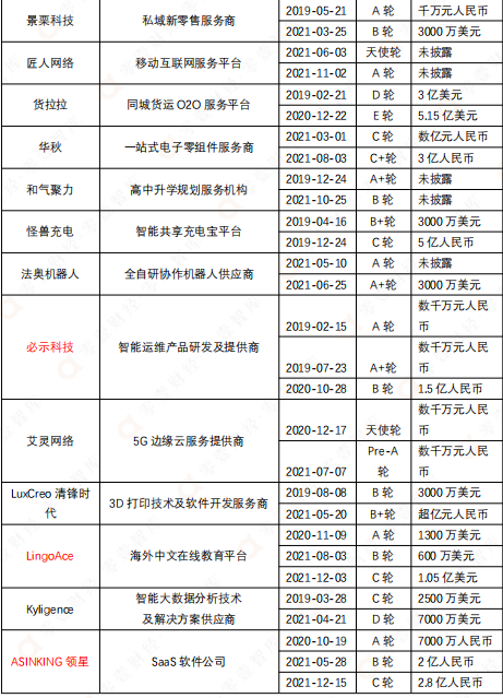 表:順為資本2019-2021年參與融資規(guī)模最大的十大數(shù)字科技企業(yè)