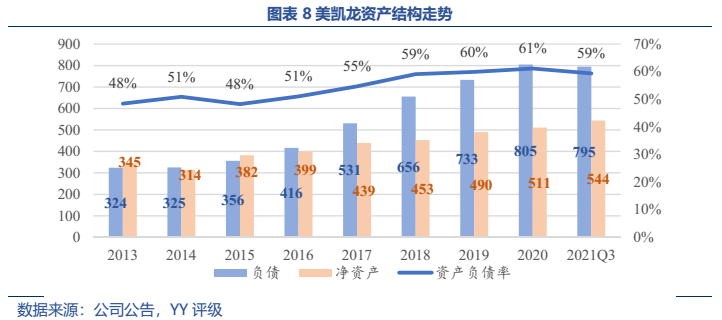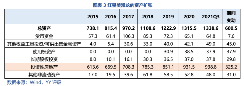 回顧美凱龍家居的這些年,作為家居賣場龍頭,2015年后總資產快速增加,這背后是權益融資與債務融資的雙增長。資金主要流向投資性房地產領域,重資產的擴張模式使得美凱龍成為“商業(yè)地產企業(yè)”,雖然已宣稱多年的“輕資產”轉型,但仍在增加自有商場數(shù)量,尚需投資規(guī)模仍較大。