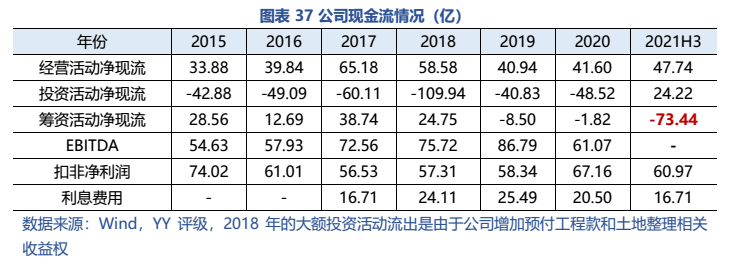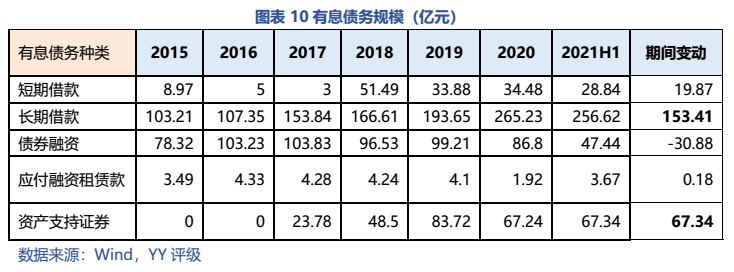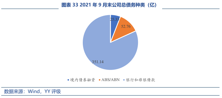 財務層面而言:截至21年9月末短債規(guī)模172.3億元,而同期現(xiàn)金及現(xiàn)金等價物僅57.3億元。償債來源方面:①經營獲現(xiàn)能力相對穩(wěn)定,按照21年前三季度水平,未來一年預計有50-60億元凈流入。②資產處置方面,2021年前三季度賣出物流子公司(約按賬面價值打9折)、贖回理財產品,投資活動流入81.68億元緩解了部分資金壓力。③再融資方面,銀行借款有抵押物支撐,預計短期內得以延續(xù)(但不排除在商場經營效益下滑趨勢下銀行拒絕滾續(xù)或要求新增抵押的可能),但到期的債券(1年內約20億元,不含有抵押的ABS)若需以銀行借款接續(xù),難度較大,因為當前投資性房地產受限比例已經達到87%。