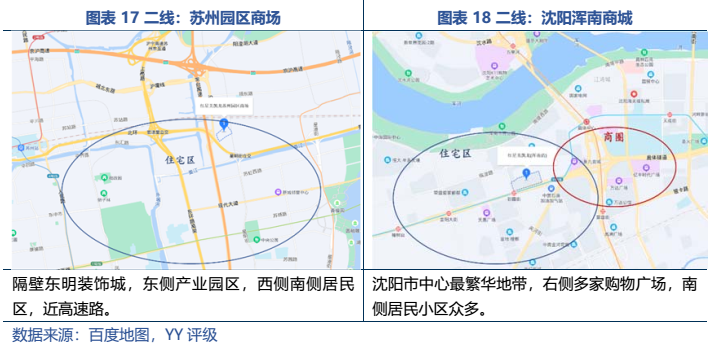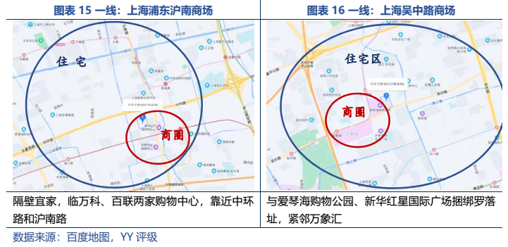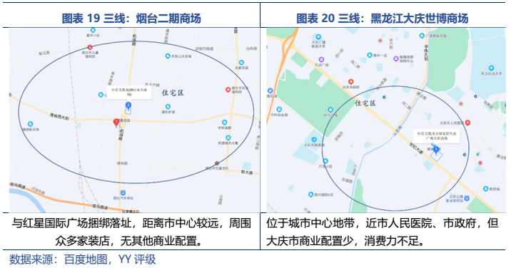 目前,即期財務壓力構成最核心的矛盾,短期來看銀行借款在抵押物支撐下得以滾續(xù)(但不排除在商場經營效益下滑趨勢下銀行斷貸或要求新增抵押物的可能);長期而言,傳統(tǒng)主營業(yè)務坪效走向下坡,或造成資產估值折損風險,而公司仍在擴建自有商場,委管收入逐年下降,且商品零售及家裝作為公司預期的新增長點仍有待觀望,資產質量的擔憂以至于對商業(yè)模式重估(店面租金高企、購買力不足的矛盾)。