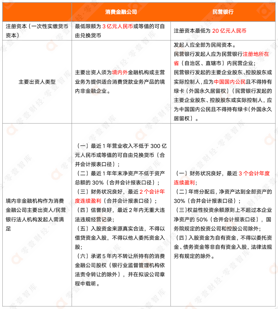 表:消費(fèi)金融公司與民營(yíng)銀行設(shè)立條件對(duì)比