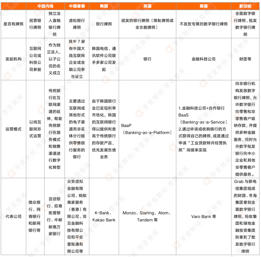表:全球部分國(guó)家和地區(qū)數(shù)字銀行設(shè)立模式及發(fā)起機(jī)構(gòu)對(duì)比
