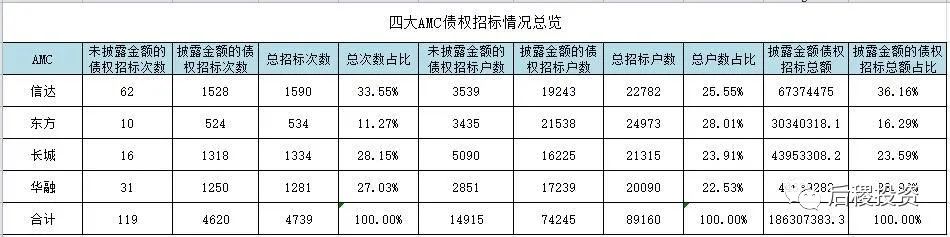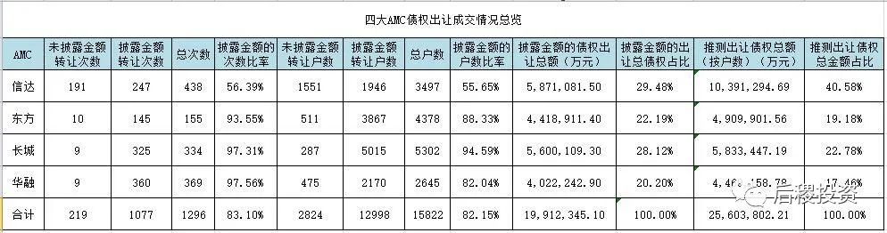 四大AMC在債權不良資產轉讓市場的整體狀況
