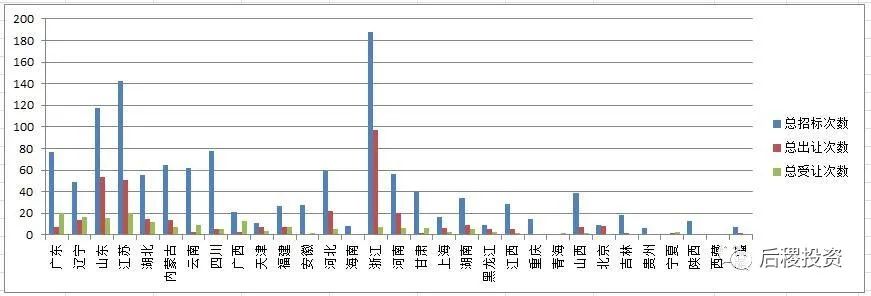 從招標次數上看,信達招標前五的省份依次是浙江、廣東、山東、江蘇和云南,從戶數上看則依次是廣東、湖南、浙江、江蘇和福建,從披露金額債權標的的總債權額看,依次是廣東、浙江、山東、內蒙古和湖南。而從成交上看,信達出讓最多的省份是浙江,遙遙領先于其他地區,廣東、福建、江蘇和湖北則依次排在后面,而信達受讓最多的地區則是浙江、河北、山東、貴州和廣西,可以看出除重點區域浙江外,收購重心往西南地區和中原地區偏移。