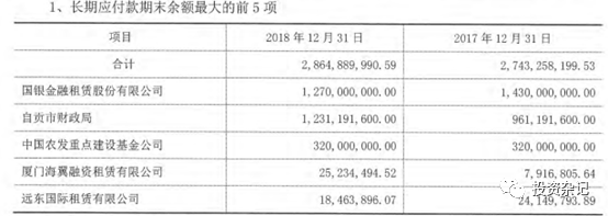 某平臺披露,其18年底其他流動負債余額4.23億元,通過查詢審計報告披露的明細,可以看出其中有2億是江西紅井岡融資租賃有限公司的融資租賃借款,其余是無息負債。
