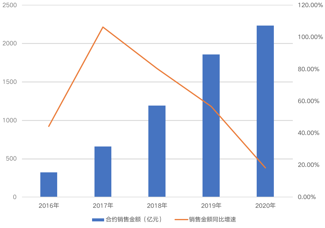 2020年是金科由“跨越式發(fā)展”向“高質(zhì)量發(fā)展”升級(jí)的開局之年,金科以全年2234.9億元的全口徑銷售金額超額完成其年初定下的2200億年度目標(biāo),位列全國第16位。