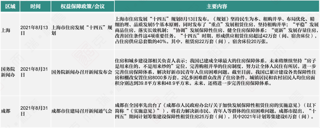 8月2日,上海率先發(fā)布《關于調(diào)整本市職工提取住房公積金支付房租月提取限額的通知》提高了市場性租賃住房月提取限額。隨后在上海發(fā)布的住房發(fā)展“十四五”規(guī)劃中,又提及了堅持民生為本、租購并舉、布局優(yōu)化、精細治理、品質(zhì)發(fā)展5個基本原則。