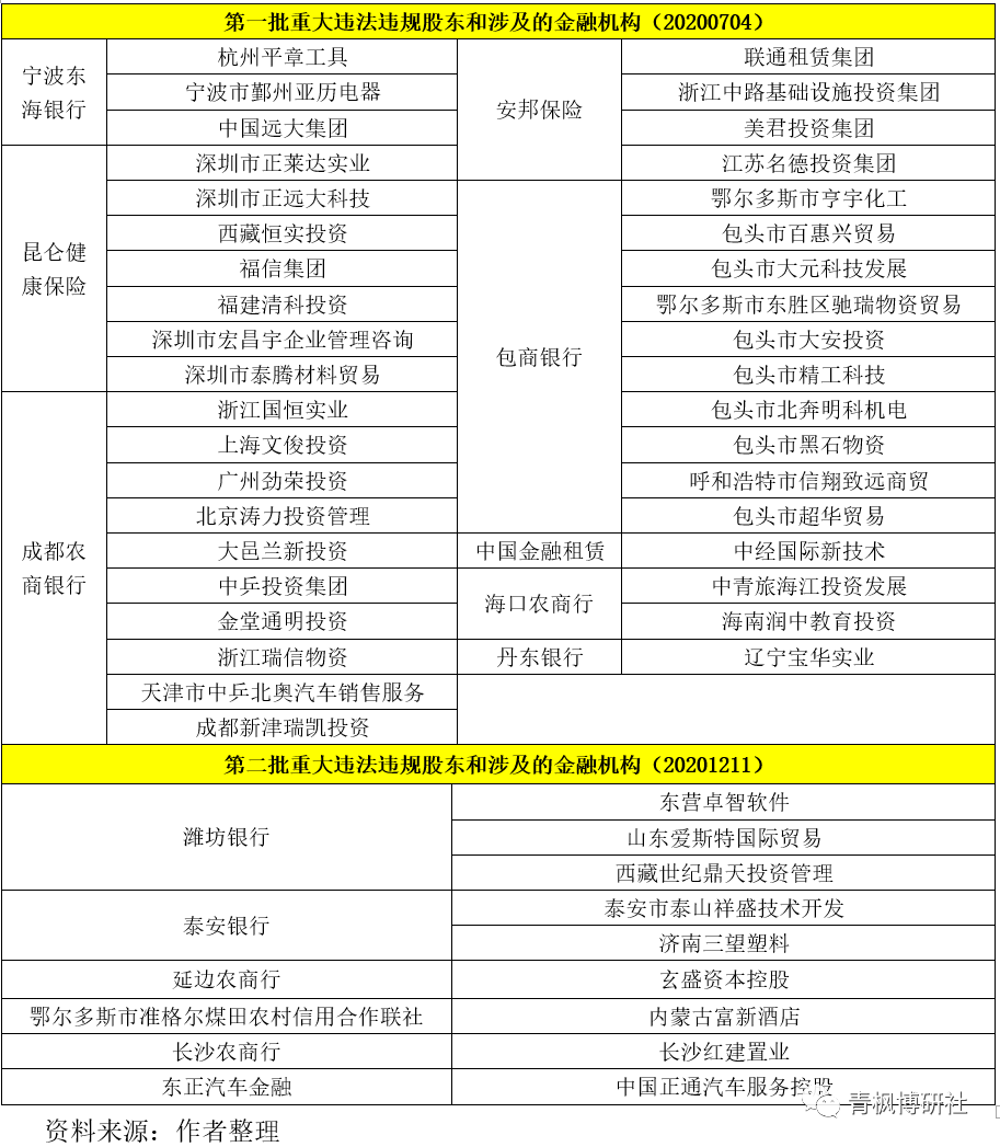 (一)第一批(20200704):38家重大違法違規股東涉及8家金融機構