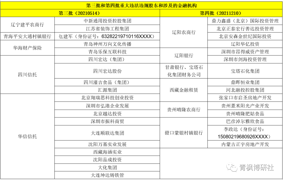 (四)第四批(20211210):15家重大違法違規股東涉及6家金融機構