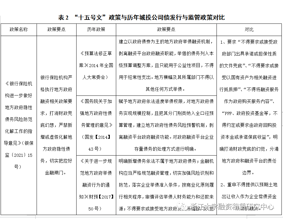 2021年7月,銀保監會印發“十五號文”,要求各銀行、保險、基金、信托等金融機構嚴格執行地方政府融資相關政策要求,強化合規管理、盡職調查,嚴禁新增或虛假化解地方政府隱性債務,切實把控好金融閘門。