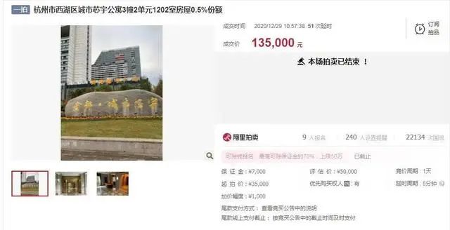 以上這些房產(chǎn),有在變賣階段的,也有剛剛進入一拍即將被拍賣的,但它們與其他普通法拍房有個非常明顯的區(qū)別,那就是它們都不是擁有完成產(chǎn)權(quán)份額的法拍房。本期,我們就以之前的杭州市西湖0.5%份額房產(chǎn)為例來給大家講講: