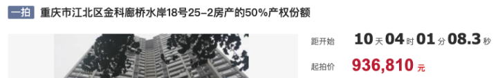 這套城市芯宇公寓3幢2單元1202室法拍房建筑面積197.37 ㎡,但特殊的是,此次僅拍賣該房源0.5%的份額,折算下來約1㎡。起拍價3.5萬元,評估價5萬元,最后9人報名參拍,經(jīng)過60輪競價,成交價飆到了13.5萬元,這套公寓拍賣的是父親名下的0.5%份額,最終兒子作為優(yōu)先購買權(quán)人拍下。