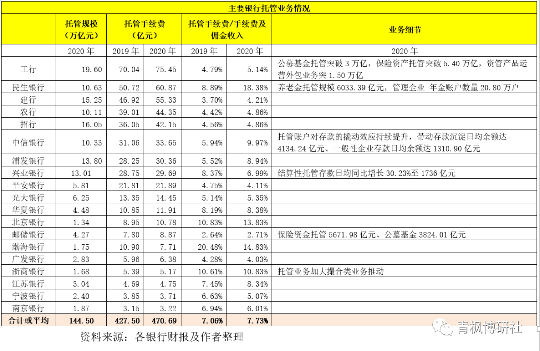 4、托管業務的對象包括各類資管產品以及職業年金、社保基金,能夠打通托管銀行與各類機構之間的合作渠道,有助于給托管銀行帶來大量優質客戶。