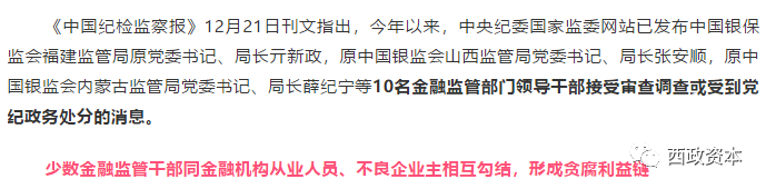 1. 金融監管與金融反腐:2020年已“進去”的銀行、信托機構高管以及2021年將繼續進行的金融行業“清算”。
