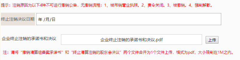 3.3點擊“上傳”,上傳企業終止注銷的承諾書和股東會決議,點擊“撤銷預覽”