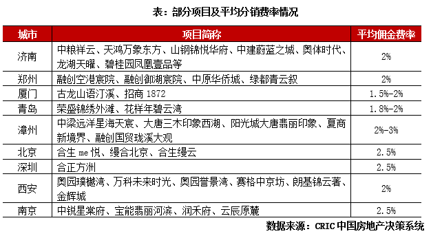 另外需要關注的是春節期間,渠道成交套數減少,部分房企調整分銷政策,傭金費率下降。過去低迷的市場行情之下,渠道是房企營銷去化的最核心手段之一。然而這個春節期間,一方面市場下行壓力大,購房者信心不足,另一方面也受假期影響,不少地方渠道成交的效果出現了不同程度的下降。根據CRIC的調研,鄭州、重慶、無錫等城市渠道分銷效果有不同程度的下滑。并且在傭金點數上,由于12月底,房企搶收業績部分項目傭金點數提升,春節期間開始逐步回調,鄭州融創由過去的3-5個點下降了一半到1.5-2個點左右。無錫的項目也普遍從4-5個點下降至2-2.5個點左右,濟南等城市分銷力度也都有所回調,傭金費率恢復到2%左右的正常水平。