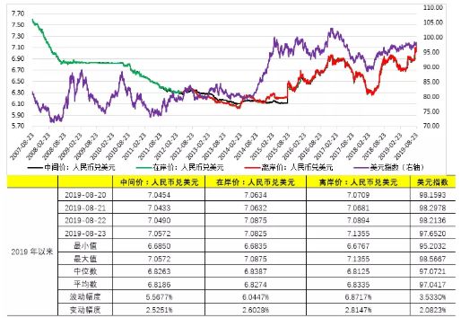 2019年以來(lái),人民幣中間價(jià)、在岸價(jià)和離岸價(jià)波動(dòng)幅度分別為5.5677%、6.0447%、6.8717%。與此同時(shí)美元指數(shù)全年波動(dòng)幅度則達(dá)到3.5330%。這一波動(dòng)幅度基本已經(jīng)相當(dāng)于過(guò)去的全年波動(dòng)幅度。
