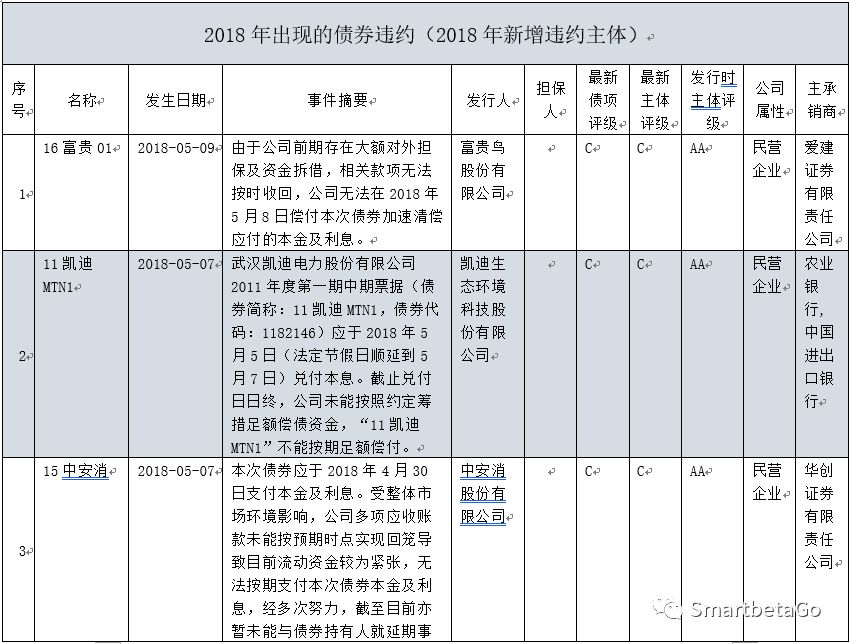 本文系筆者于2018年1月所寫,而今來看2018年資本市場的信用風(fēng)險防控壓力遠(yuǎn)大于歷年,極有可能超過2016年,預(yù)期到2018年下半年信用風(fēng)險壓力仍難以得到緩解。第三部分整理了2018年截至5月中旬的新增違約主體和債項(xiàng)。