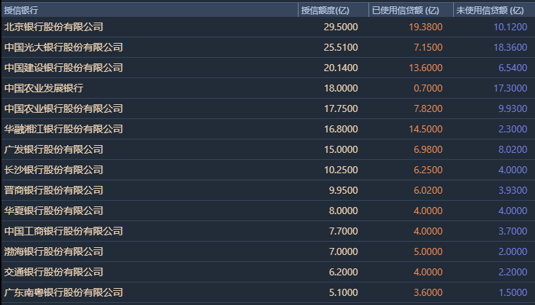 截至2019年6月30日,九華的授信額度總計218.65億元,使用過半。