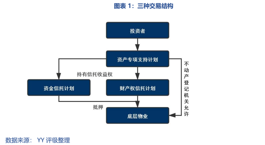 第三種模式剝離的一層SPV為信托計(jì)劃,主要由于我國(guó)多地的不動(dòng)產(chǎn)登記機(jī)關(guān)不接受原銀監(jiān)會(huì)體系(如信托公司)外的機(jī)構(gòu)(如證券公司或基金管理公司子公司)進(jìn)行不動(dòng)產(chǎn)登記。