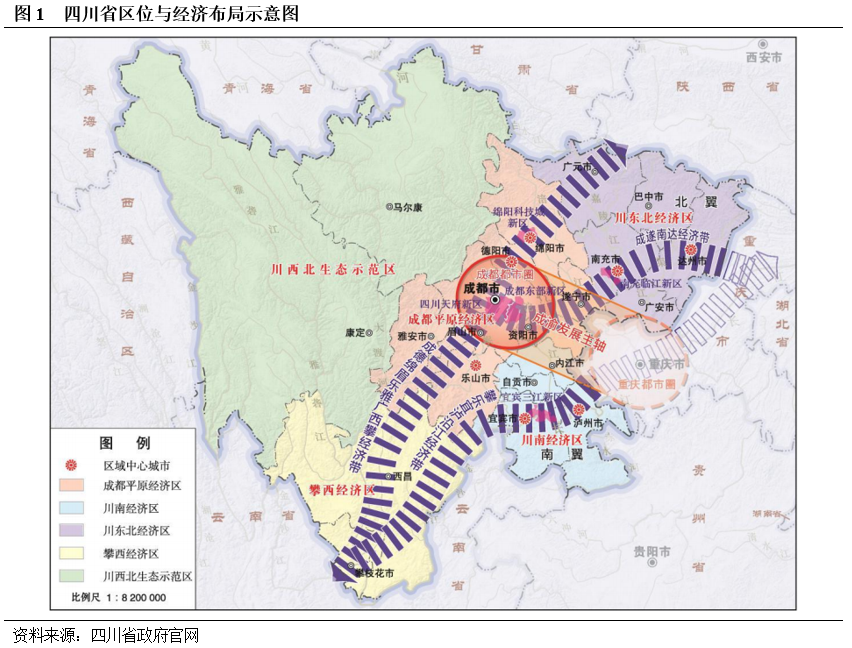 四川省各市(州)經濟發展不均衡,省會成都市的極核與主干功能突出。省會成都是全省的經濟、金融中心和交通通信樞紐,2020年末全市常住人口突破2,000萬,占全省人口的比例約1/4;成都市經濟實力明顯強于其余地市(州),2021年全市GDP規模近2萬億元,占全省GDP總量的比例為36.99%,其余市(州)GDP均在3,500億元以下,其中資陽、雅安、巴中、阿壩州和甘孜州的GDP未突破千億元;成都市經濟增速為8.6%,高于全國及四川省平均水平;成都市上市公司數量占全省比例為65.19%。