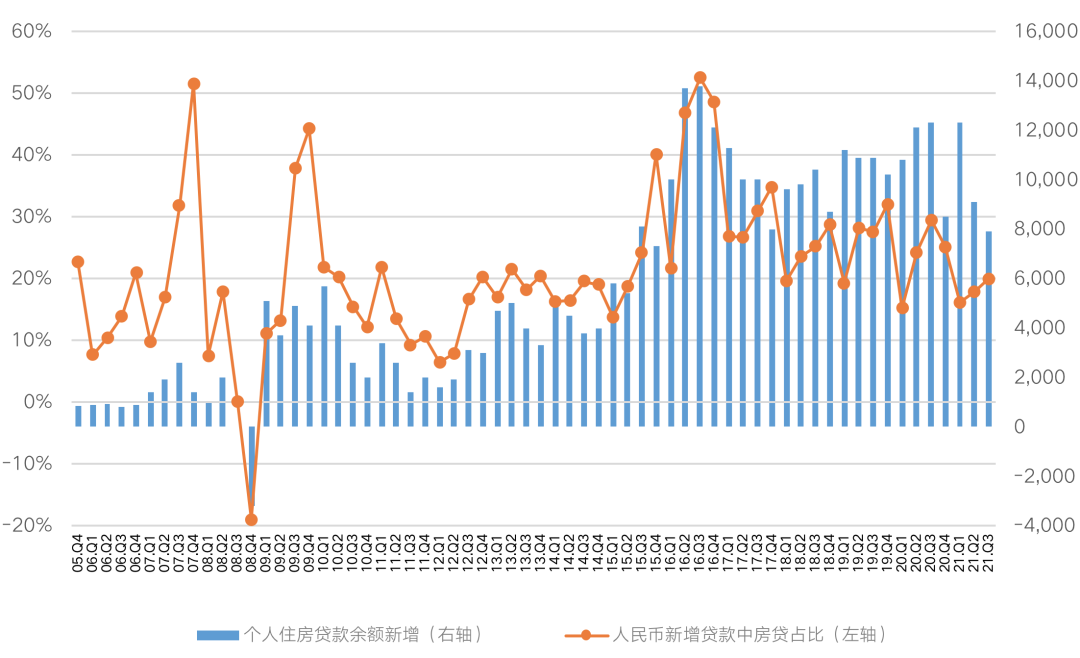 2021年三季度,個人住房貸款余額新增7900億元,環(huán)比下降13%,同比下降36%,連續(xù)兩個季度不斷下降,打破了2015年以來三季度較二季度個人住房貸款新增額上升的周期性規(guī)律。