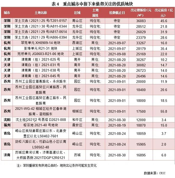 此外,天津南開區(qū)、蘇州工業(yè)園區(qū)、濟南歷城區(qū)、福州晉安區(qū)等均掛出多宗優(yōu)質(zhì)地塊,房企也可重點關(guān)注。