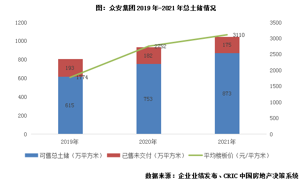【土地儲備充裕,滿足未來5年開發(fā)所需】截止2021年底,眾安集團共擁有總土儲建面1048萬平方米,其中已售未交付面積175萬平方米,剩余可售面積約873萬平方米左右,按照管理層的預(yù)估,可以滿足企業(yè)未來5年發(fā)展所需,土儲較為充裕。