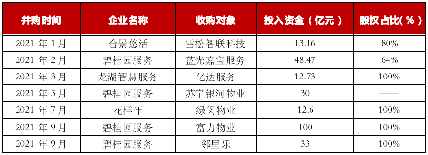 表:2021年部分物業(yè)服務(wù)企業(yè)超10億的收購事件