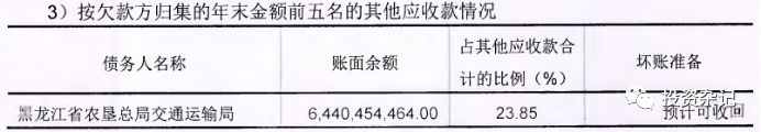 北大荒2019年底其他應(yīng)收款227.02億,占總資產(chǎn)比重11.4%,規(guī)模和占比是比較大的,且三年以上其他應(yīng)收款占比達(dá)到了39.23%,賬齡偏長,整體其他應(yīng)收款質(zhì)量是比較差的。這里面很大一部分是非經(jīng)營性占款,被股東或者關(guān)聯(lián)方占用了,欠款最多的就是黑龍江農(nóng)墾局交通運(yùn)輸局,占用了64億,三亞保力房地產(chǎn)是黑龍江建投下面的地產(chǎn)公司,公司拆借了10億給他,第五名錦州蘭星石化是個(gè)民企,公司拆借了8億。僅僅這前五大,非經(jīng)營占款就達(dá)到了90億左右,而且前五大占比近40%,后面還有60%也就是130多億沒有披露明細(xì),這里面很可能還有很多非經(jīng)營占款。這么大金額被挪用到體外的資金我們是很難在北大荒自己的資料里面跟蹤到其這部分被占用資金的實(shí)際風(fēng)險(xiǎn)的。