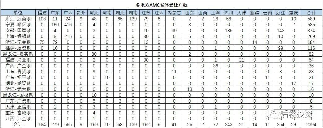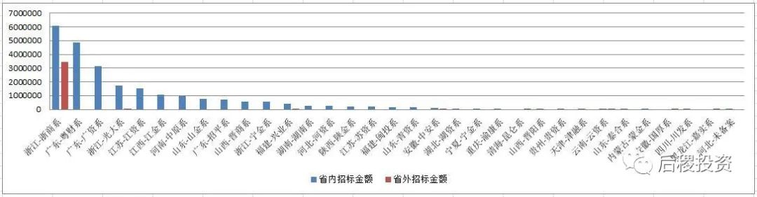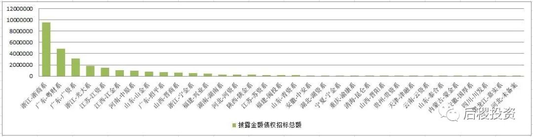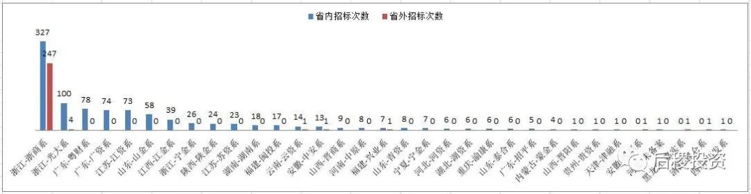 從上圖可以看出,浙商系是債權(quán)不良資產(chǎn)省外招標的唯一主要貢獻方。