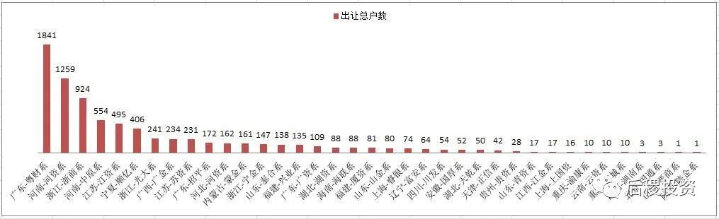 從根據(jù)受讓金額的排序來看,浙商系的受讓規(guī)模遠高于其出讓規(guī)模,但出讓規(guī)模和受讓規(guī)模之比,較其他受讓規(guī)模較高的地方AMC仍為高,此處的原因妄自不好論斷,因各地方AMC處置債權(quán)資產(chǎn)的手段不一,但浙江省作為全國成交最活躍地區(qū),其本土地方AMC的優(yōu)勢也在此顯現(xiàn)了出來。另雖規(guī)模較浙商系差距較大,但單從出讓和受讓規(guī)模的對比上,河南的河資系情況與浙商類似。另外,福建的廈資系、廣東的粵財系以及廣西的廣金系,出讓均遠超受讓,可以理解為與其他地方AMC經(jīng)營方向上的不一致。廣東的出讓戶數(shù)特別高,是由出讓資產(chǎn)包的類型決定的,屬正常現(xiàn)象。