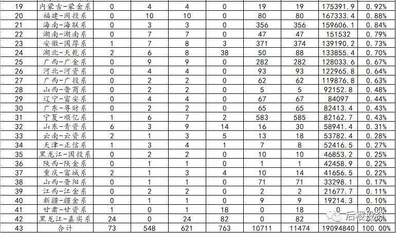 在省內(nèi)招標總比重方面和在包括四大在內(nèi)的省內(nèi)持牌AMC招標中,地方AMC中份額前五的是江西的江金系、浙江的浙商系、廣東的粵財系、江蘇的江資系和河南的中原系,其中江西系占到了省內(nèi)持牌AMC的45%左右,而浙商系也占到了25%左右。