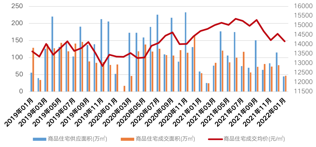 2022年前兩個(gè)月房地產(chǎn)市場并不樂觀,整體供應(yīng)、需求和價(jià)格都呈現(xiàn)下行趨勢。