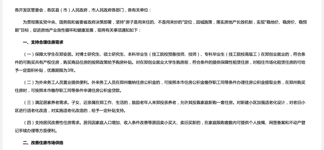 1.有針對性取消限購,允許部分家庭新購一套住房。對子女、近親屬在鄭工作、生活的,鼓勵(lì)老年人來鄭投親養(yǎng)老,允許其投靠家庭新購一套住房。