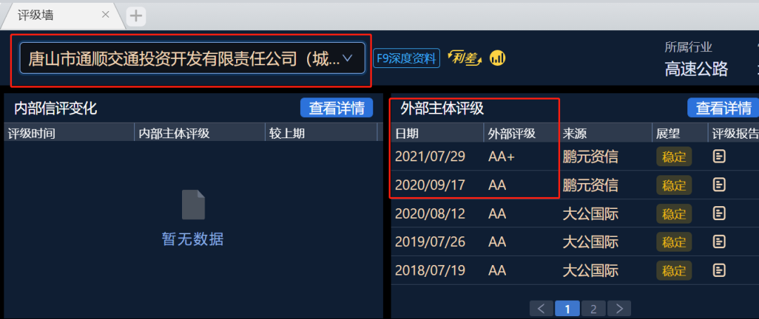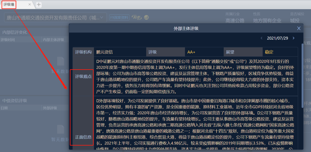在如此艱難的情況下,唐山通順交通投資開(kāi)發(fā)有限責(zé)任公司(以下簡(jiǎn)稱“通順交投”)為眾多城投公司中的佼佼者,2021年7月30日公開(kāi)披露,公司的主體信用級(jí)別由AA上調(diào)至AA+,成為2021為數(shù)不多評(píng)級(jí)上調(diào)的城投公司之一。