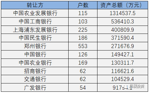 從上圖看,農(nóng)發(fā)行出讓金額遙遙領(lǐng)先,其體量甚至超過工行、浦發(fā)行和民生銀行(2-4名)三家總和。五大國有銀行中(交行、中行、農(nóng)行、建行、工行)僅工行一家位列前五。