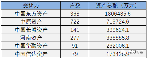 從上圖看,19年東方資產(chǎn)受讓銀行資產(chǎn)體量最大,所占比重接近一半。