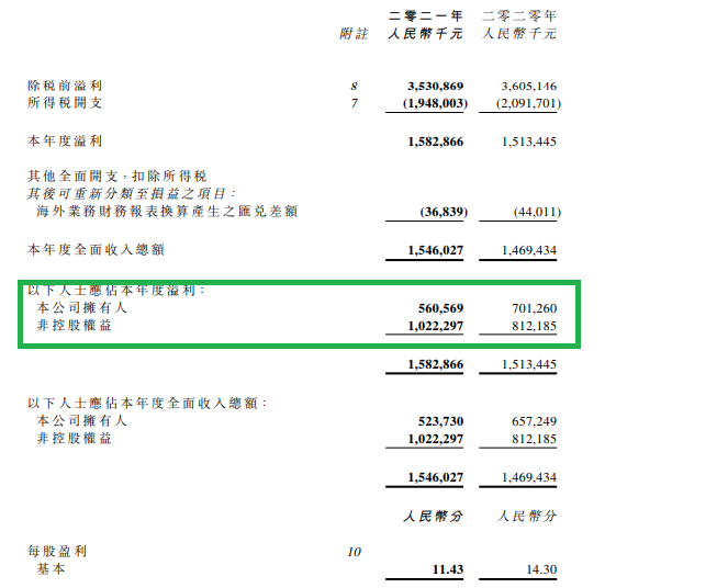 更蹊蹺的是,非控股權(quán)益部分的凈利高達(dá)10.22億元,2020年為8.12億元——這利潤的結(jié)構(gòu),實在是好玩。