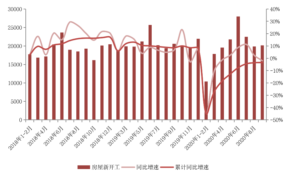 一方面是房企當前迫切需要資金節流。另一方面由于疫情所致上半年全國土地購置面積較小,因此下半年可供開工項目基數也少于往年同期。