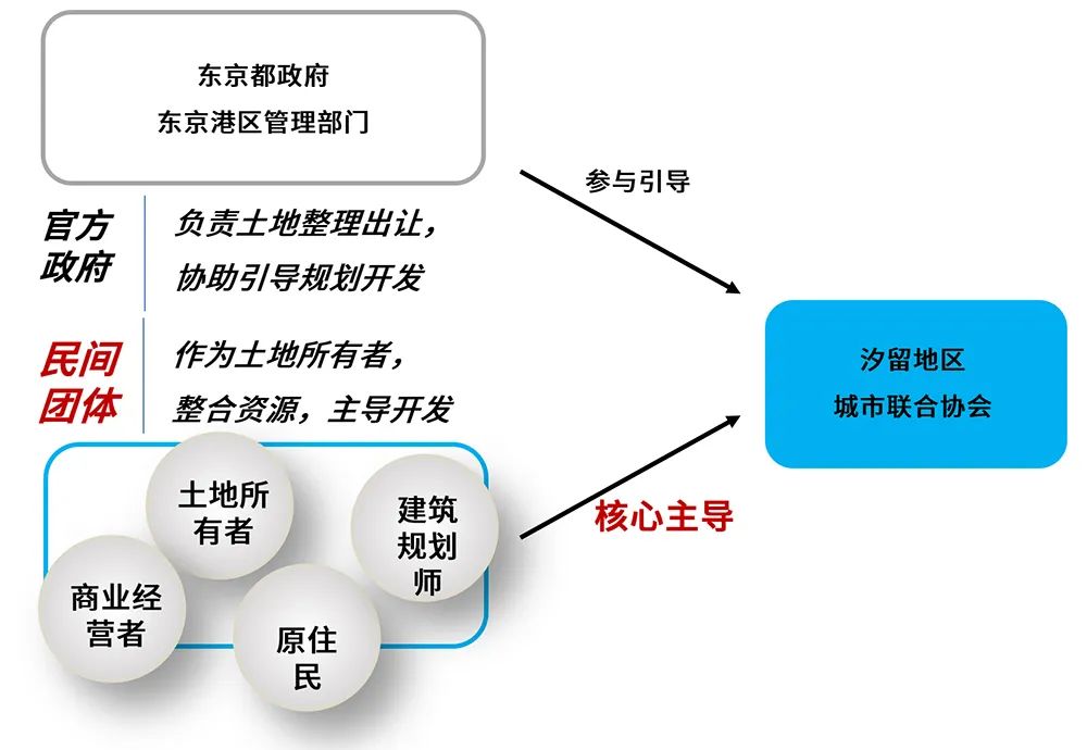 公私聯合,統一方向:汐留SIO-SITE所屬的東京港區管理部門,在開發前期,以「輕參與重引導」的方式參與其中。