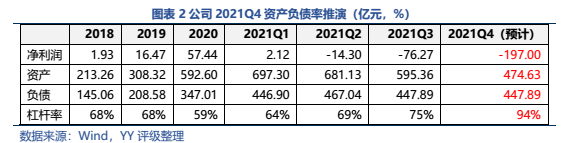 公司本就規模小、杠桿率高、前期累計的利潤少,先天底子薄,而公司又踏錯周期,20-21Q1高位繼續激進擴張,進一步積累了債務負擔。當 2021年2季度豬肉價格急速下滑后,公司的報表全面惡化,預計21年末資產負債率將突破90%,凈資產僅剩27億左右,陷入財務危機中。