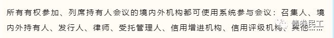 更為關鍵的是,債券持有人、發行人、律師、受托管理人、信用增進機構和信用評級機構等均可以通過持有人會議管理系統參會,實現了債券各利益相關方的全面參會,能夠更好地保障各方的利益。
